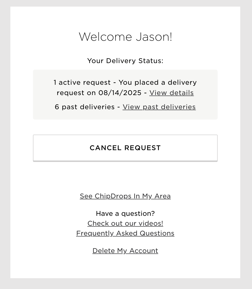 How can I cancel a delivery request?