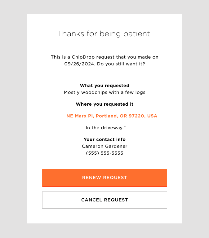 If you have a request that is more than 25 days old, you must renew it in order to keep it active. To renew your request, click the "Renew Request" button.