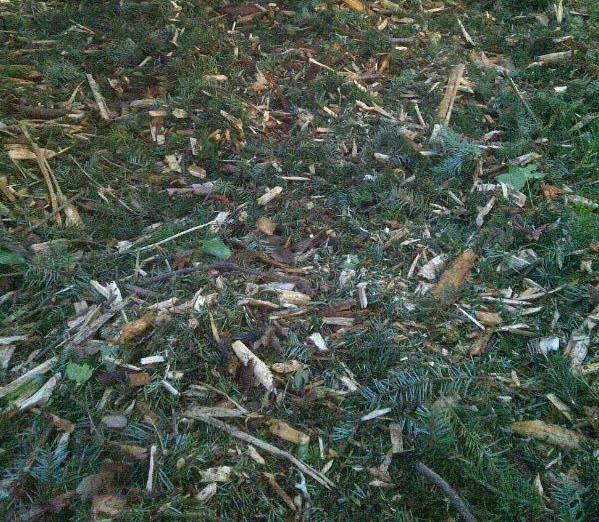 There is always a small amount of material at the end of a job that the chipper won't accept for one reason or another. In order to make this service viable, a small amount of random debris should be expected in each load. Just chuck it in your refuse bin.